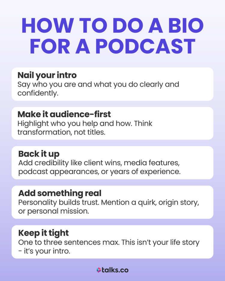 So they move to the next pitch. Not because you’re wrong for the show. Because nothing in the bio made it obvious you were right.